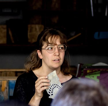 Engagée dans des projets de transmission, elle mène des ateliers, notamment avec le Frac-Artothèque Nouvelle-Aquitaine.