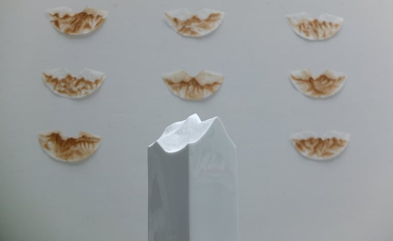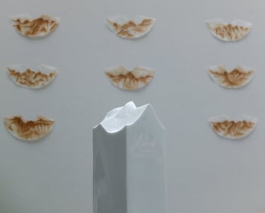 Dans la vallée du Langtang au Népal, un sommet de 6140 mètres. Par l’arpentage des cartes et photographies, j’appréhende sa forme. Ce geste sculptural, est une tentative de revenir sur les pas de mon père l’himalayiste Jean-Chistophe Lafaille qui durant l’hiver 1996, a été le premier à dessiner une ligne d’ascension dans cette montagne.